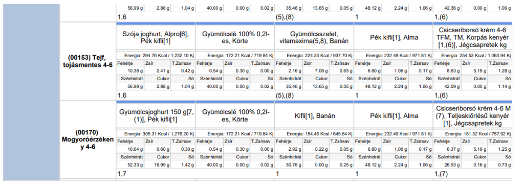 TOVÁBBI ALLERGÉN INFORMÁCIÓ: elelmezes@kornye.hu