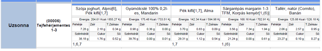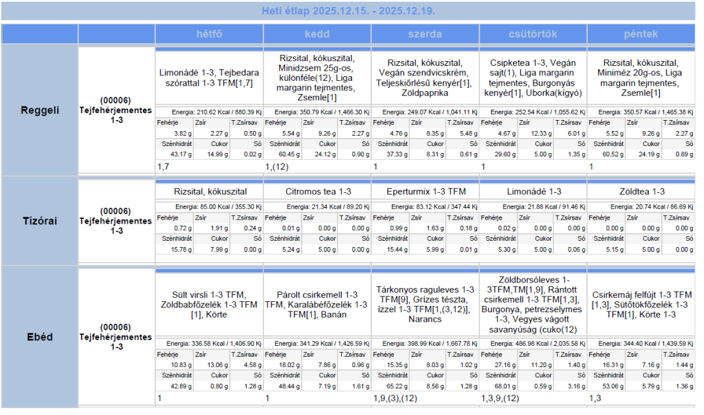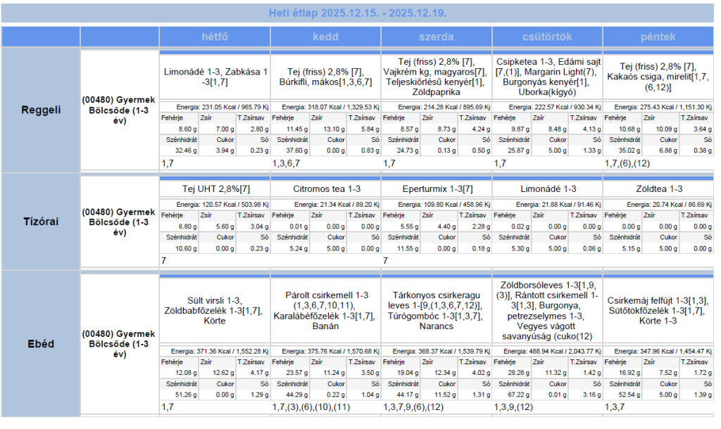 TOVÁBBI ALLERGÉN INFORMÁCIÓ: elelmezes@kornye.hu